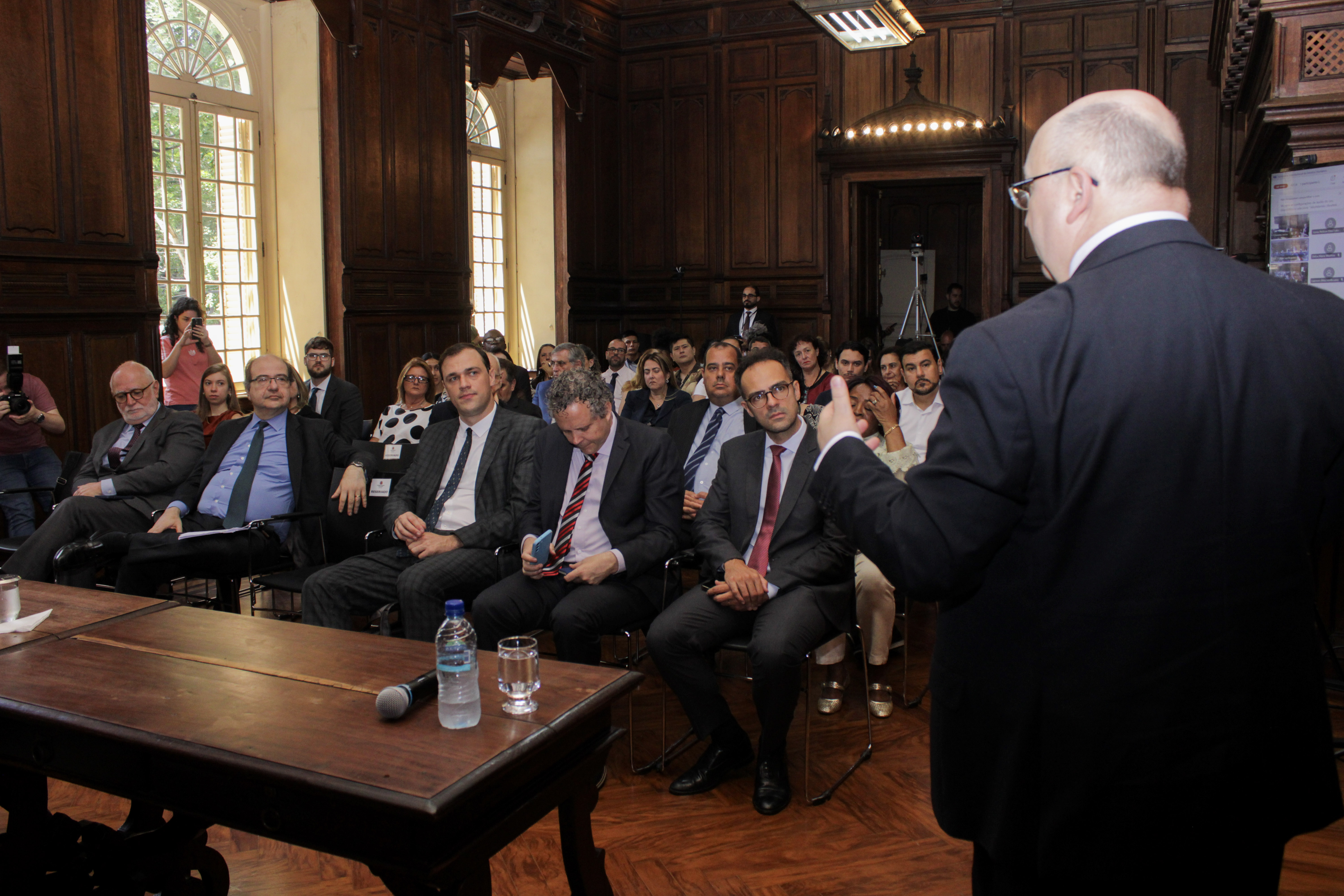 Mais de 150 pessoas participaram do Seminário, presencialmente e online, entre eles o secretário-executivo da Justiça e Cidadania, Raul Christiano, a subsecretária de Gestão Corporativa, Lucimara Nunes, o chefe de Gabinete, Thiago Rodrigues, o superintendente do Ipem, Marcos Guerson, o presidente do Imesc, Alexandre Pessoa, e a presidente da Fundação CASA, Claudia Carletto.